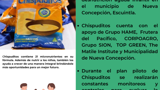La Asociación de Productores Independientes de Banano (APIB) promueve la reducción de la desnutrición aguda infantil con el Proyecto Piloto Chispuditos, y en el cual participan empresas socias: Grupo HAME, Frutera del Pacífico, CORPOAGRO, Grupo SION, TOP GREEN e instituciones como The Matile Institute y Municipalidad de Nueva Concepción.